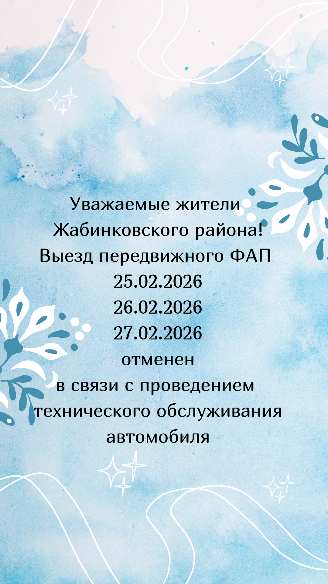 Выезд передвижного ФАП 25.02.2026-27.02.2026 отменен