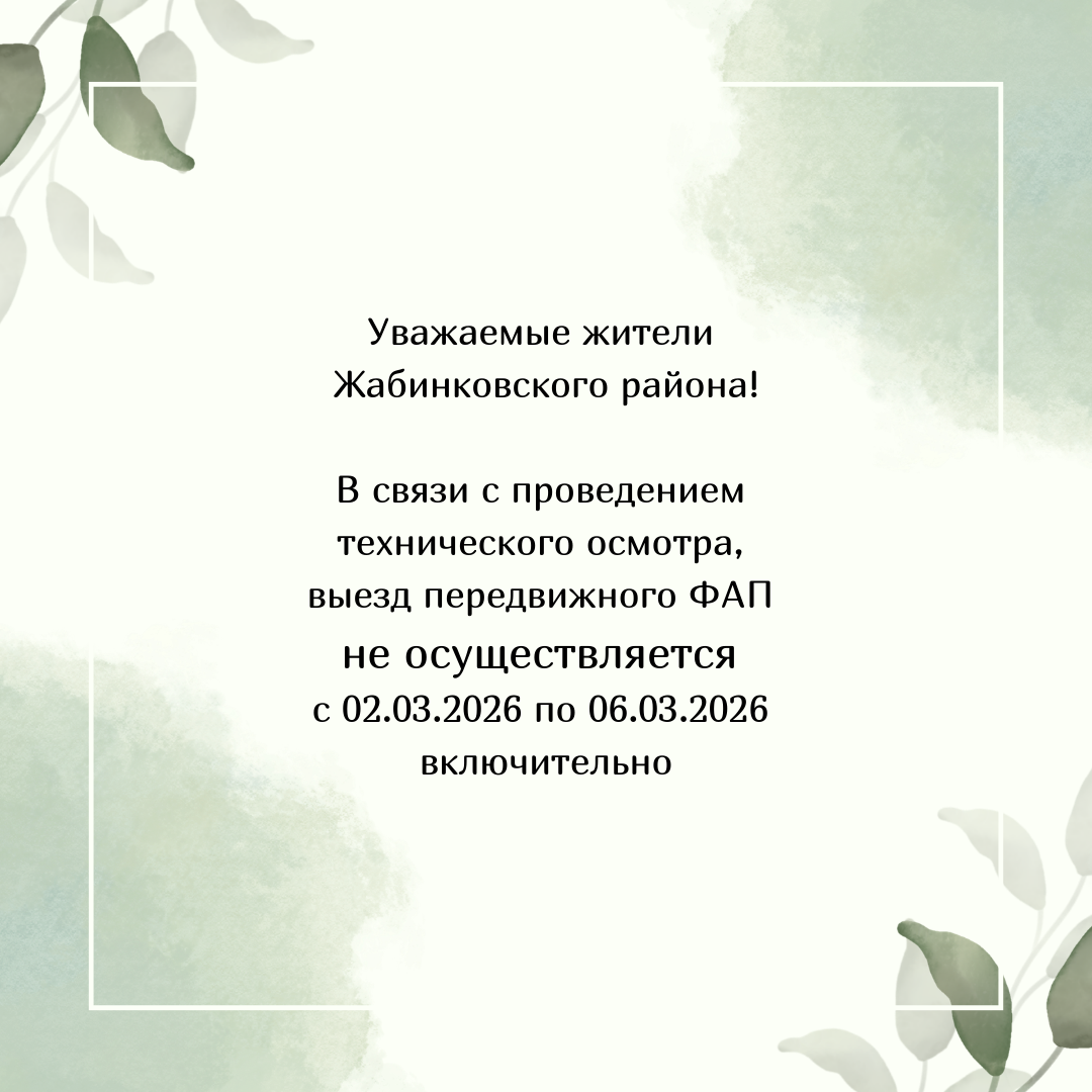 Выезд передвижного ФАП не осуществляется с 02.03.2026 по 06.03.2026