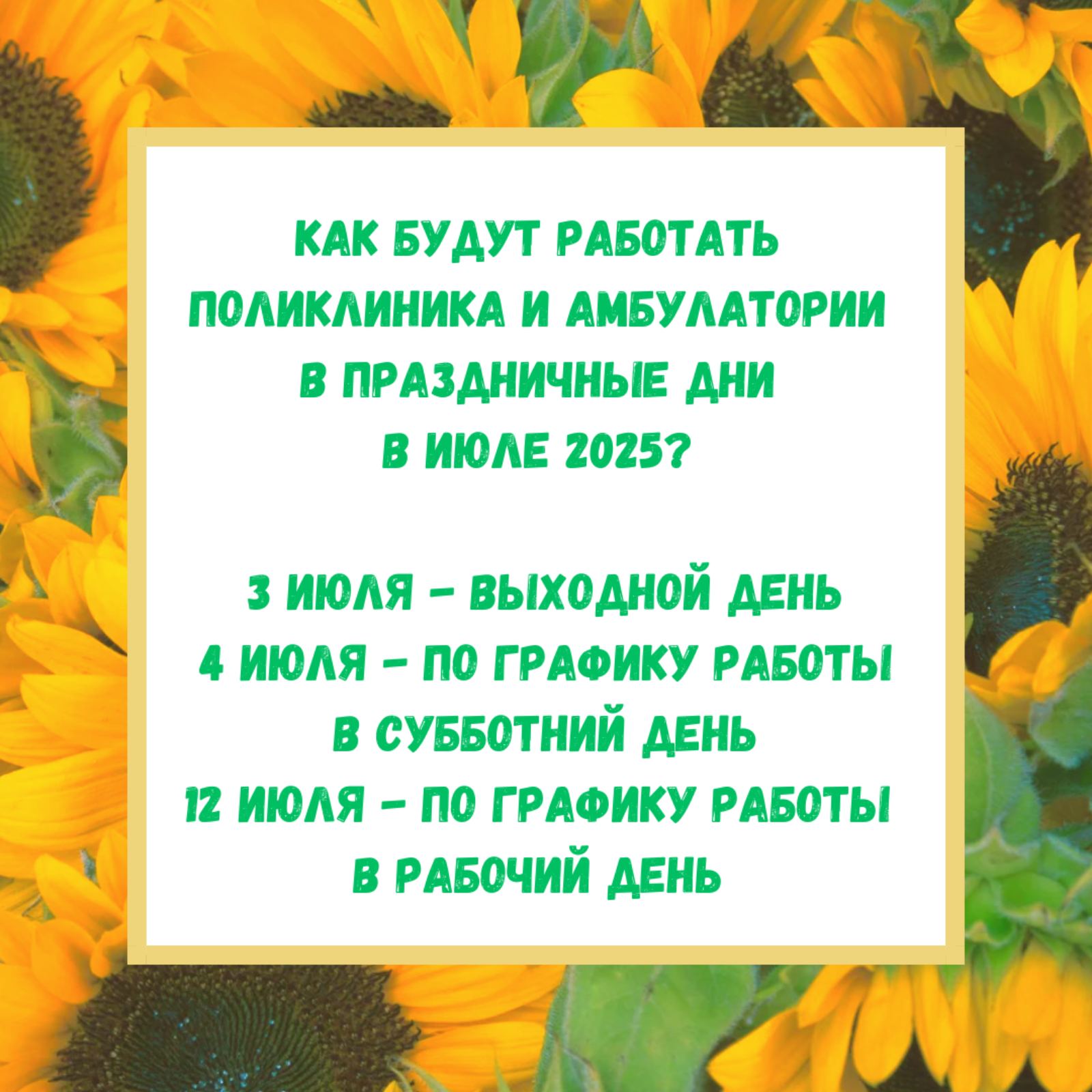 Как будут работать поликлиника и амбулатории в праздничные дни в июле 2025?